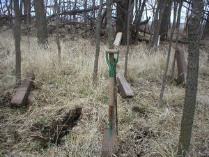 The picture is of Woodcock Cemetery, and shows how our volunteers aren't just photographing, but are actually finding the tombstones sometimes. In the picture you can see three stones which have been literally dug up, and some of the holes they came from, plus the shovel. I would like to show people how dedicated our volunteers are, and how much exciting information is going to be available as a result. Woodcock was an uncatalogued cemetery, and we have found 23 legible stones, representing over 25 people. ~ Monica, in the early days of the project. The mission of this website is to provide pictures of every known tombstone in Andrew